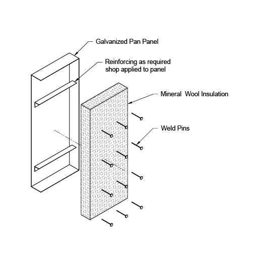 SAF Metal Fabrication introduces a new panel product for our insulated panel product line: Insul SAF M5000, our Factory fabricated Spandrel Pan that incorporates mineral wool, and is designed to save energy in opaque glazing areas of exterior building envelopes. Mineral wool insulation in the spandrel pan can withstand temperatures above 2000° F, is moisture resistant, provides acoustical noise damping, and qualifies for LEED Green Building Credits.