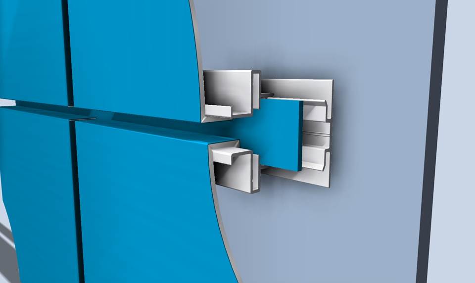 The sleek panel system has the features most recently requested by architects, fabricators, and installers. Architects desire sleek-looking panels with continuous edge surfaces. Fabricators profit from the elimination of secondary drilling and countersinking of fasteners, reducing assembly time. Installers benefit from using the same wall panel extrusions and installation methods.